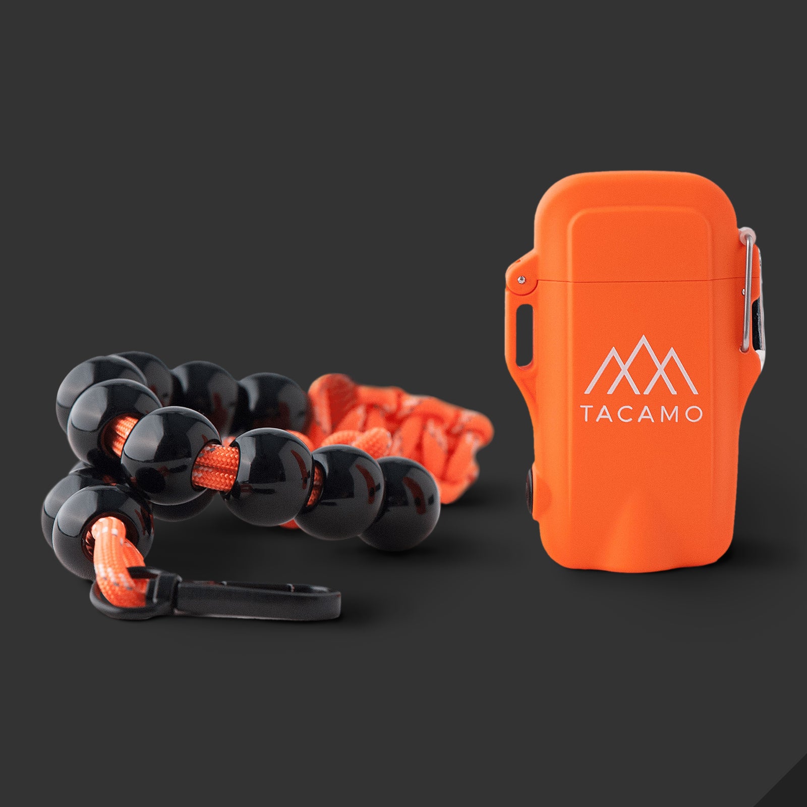 For this project you will need 22’-25’ of eitherSurvivorCord or WarriorCord when trying this for the first time. Once you get the hang of it, you should only need 20’. Take your length of paracord and fold it in half and tie a snug overhand knot at the center point. Now tie another simple over hand knot on the left cord 11” from the original knot. Then take the cord and fold it back in half with the knots next to each other.