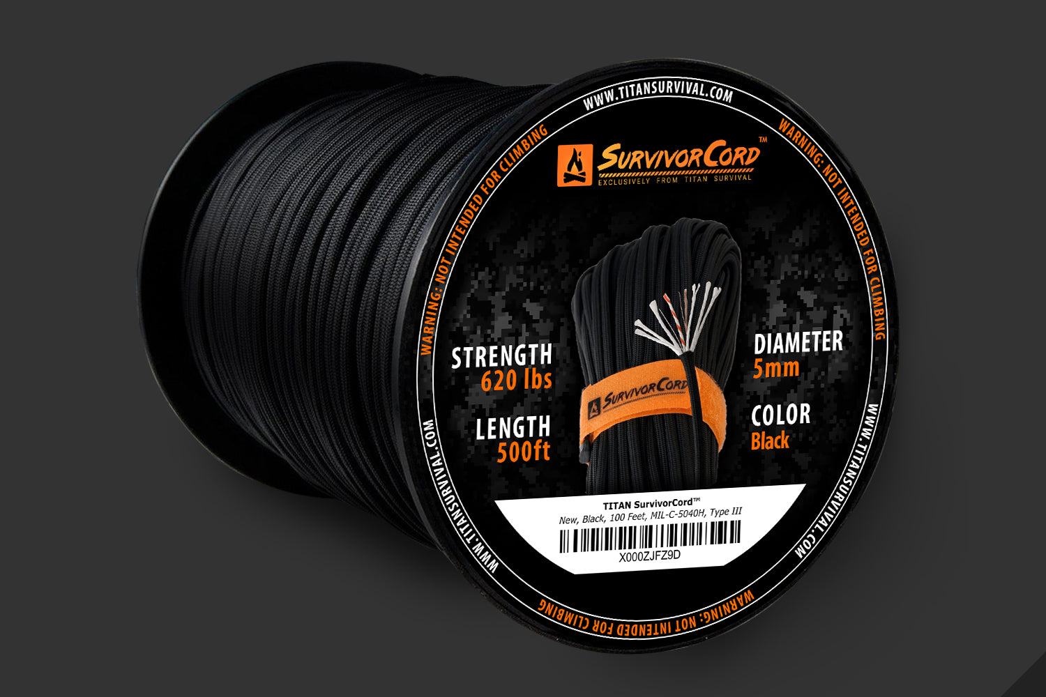 SurvivorCord is our original patented MIL-STYLE 550 paracord, designed for the battlefield, that began life as MIL-SPEC 550 paracord...but then we add three extra potentially life-saving threads to the paracord core, and then reinforce the sheath to be able to handle those increased threads. SurvivorCord is the ultimate survival paracord, a crowd-favorite, and is used all around the world.