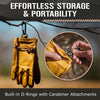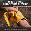 • SIMPLE DESIGN FEATURES - Our cowhide leather work gloves boast integrated D-rings and a carabiner for storage, and cinch-style pull strings around the wrist for adjusting the perfect fit. These leather work gloves are available in Small, Medium, Large, and X-Large.